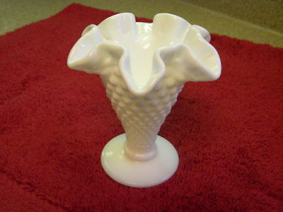 FENTON HOBNAIL MILK GLASS DOUBLED CRIMPED 4"CONE VASE
