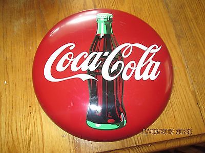 Vintage 1990 Coca Cola bottle Tacker Type Sign Metal Button Coke auth. 12"