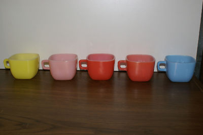 8 Mugs 50's McKee Glasbake Square Lipton Milk Glass