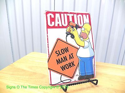 Homer Simpson Caution Slow Man At Work 3D Embossed Metal Man Cave Decor Dad USA