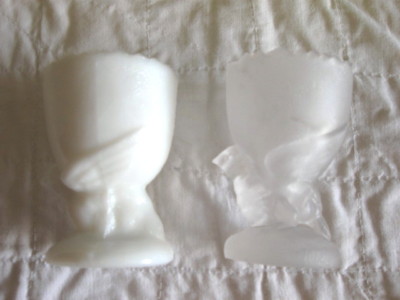 4 OLD CHICK EGG CUPS,VASELINE,MILK GLASS,CLEAR,FROSTED