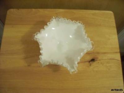 VINTAGE FENTON SILVER CREST RUFFLED EDGE MILK GLASS