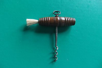 Vintage Cork Screw with Brush. Wood Handle. Extra Nice. Estate Find