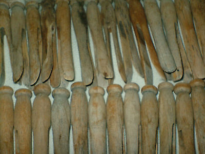 Title (ebay affiliate link): 47 Primitive Vtg Weathered Round Flat Top Wooden Clothes Pins Nice Patina
