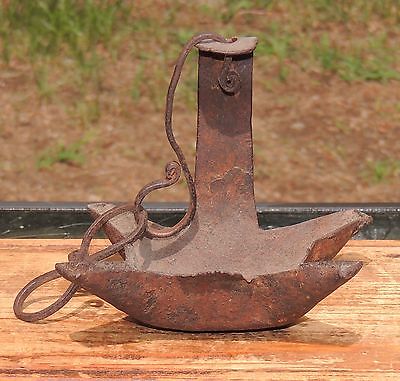 Title (ebay affiliate link): Antique Primitive Wrought Iron 4-Wick Betty Grease Fat Oil Lamp
