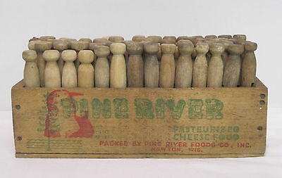 Vintage Wooden Pine River Cheese Box w 69 Round Top Clothespins 4 Laundry Decor