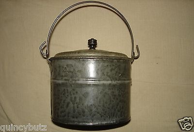 ANTIQUE SIGNED GRANITEWARE LUNCH BOX BERRY PAIL GRAY MOTTLED ENAMEL