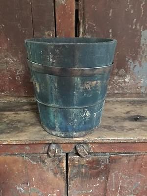 Early Primitive Antique Wooden Stave Bucket Blue/Green Paint