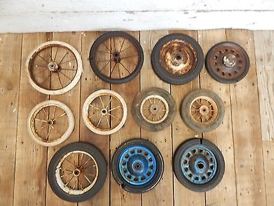 11 Old Vintage Wheels ~ Primitive Decor Crafts Pedal Car Cart Wagon Parts