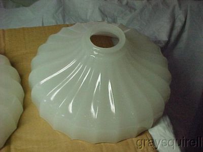 2 ART DECO FLUTED MILK GLASS SHADES -TORCHIERE