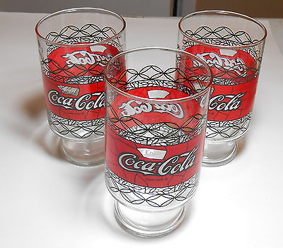 Title (ebay affiliate link): Vintage 32 oz Red Black White Letters Coca Cola Pedestal Glass Lot Of 3 AWESOME!