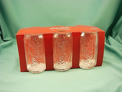 6 COCA-COLA EMBOSSED CAN SHAPE GLASSES NEW NEVER USED TUMBLERS
