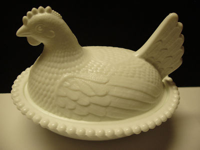 Vintage Milk Glass Hen On Nest MINT Chicken Superb Dish