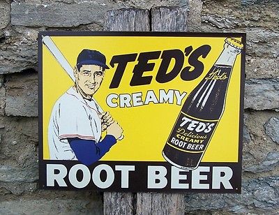 Antique Look Ted Williams Root Beer Ad Baseball Metal Retro Wall Sign USA 16"L