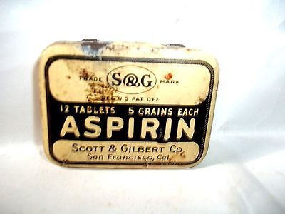Title (ebay affiliate link): vintage Scott & Gilbert S & G Aspirin tin empty San Francisco with hinged lid