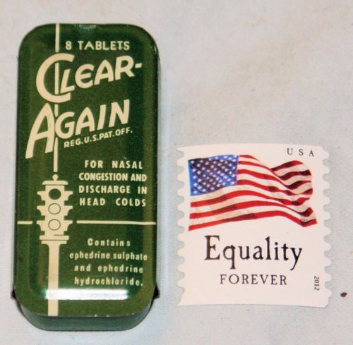 Title (ebay affiliate link): Vintage Clear Again Medicine Tin 1.75"L 1940's Stoplight Logo Pharmacy TINY OLD
