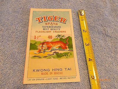 RARE! Vintage Firecracker Pack Label: TIGER BRAND 40s (3" X 5") Kwong Hing Tai