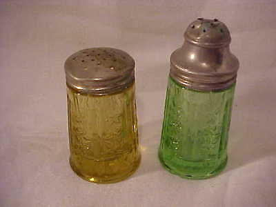 Title (ebay affiliate link): Depression Glass Salt Shakers Amber and Green color Cabbage Rose Pattern