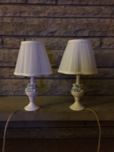 Title (ebay affiliate link): Vintage Blue and White Rose Lamps/Capodimonte Like Cut Flowers