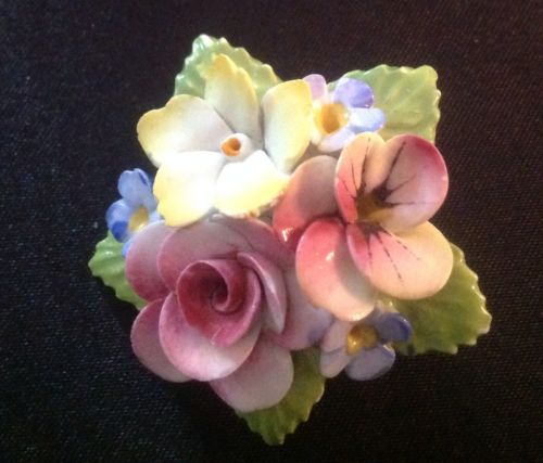 Title (ebay affiliate link): Porcelain Pastels Enamel Capodimonte flower Pin English Gorgeous 2"