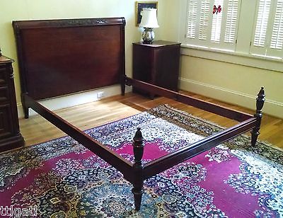 JOHN WIDDICOMB Full Size Carved Wooden Victorian Mahogany Bed Frame Headboard