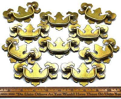 Antique CHIPPENDALE DRAWER PULL Lot 10 Crimped STEEL PLATES w/ SOLID BRASS PULLS