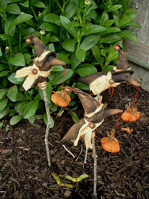 THREE OLDE CROW WITCHES/PUMPKINS~POKES~REAL TWIGS~HANDMADE