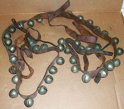 Antique Horse Sleigh Bells on Leather Strap (40 1-1/4" Identical Bells) "Jingle"