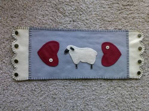 Title (ebay affiliate link): Handmade Primitive Folk Art Sheep and Hearts Penny Rug --- Prim