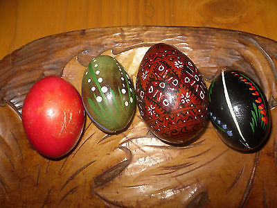 Antique Ukrainian wooden carved and painted easter eggs handmade