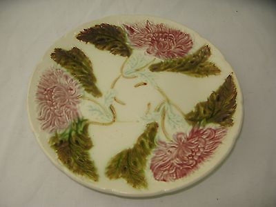 8 1/2" Colorful Beige Antique Majolica Floral Plate / Dish
