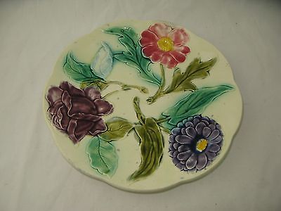 8 3/4" Colorful Flowers Beige Antique Majolica Plate / Dish