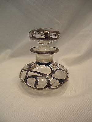 Clear Glass Perfimer w/ Silver Overlay & Original Stopper