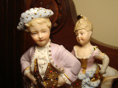 Lovely Antique Figurine Vases -- colonial pair -- heavily painted GOLD features