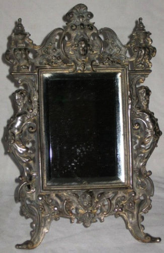 Title (ebay affiliate link): Antique*CAST METAL MIRROR*Bradley & Hubbard*BEVELED*Ornate*CHERUB*Bacchus*VANITY