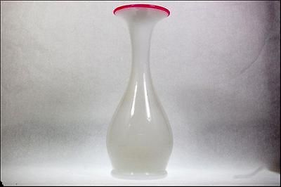 ANTIQUE FRENCH WHITE OPALINE CRANBERRY ART GLASS VASE