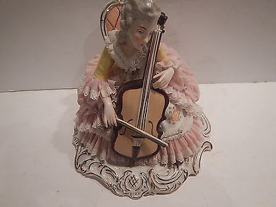 Dresden Germany woman pink lace dress large size bass figurine estate nice