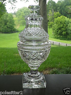 Antique Brilliant Cut Glass Faceted Diamond Block Cut 11" Covered Tall Urn & Lid