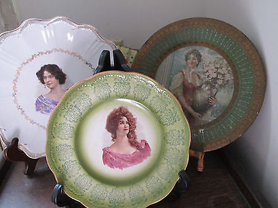 ~3 Beautiful Antique Lady Portrait Plates~NR~