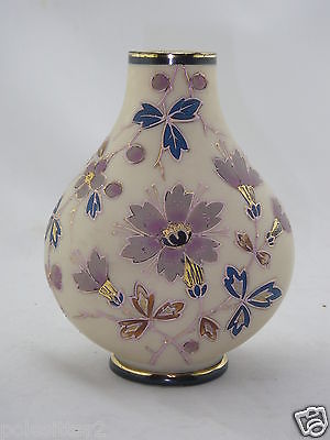 Antique Victorian Era Custard Glass Vase HP Gold & Enameled Flowers Marked PR