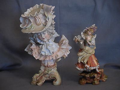 2 German Galluba Hofmann Porcelain Bisque Bust Lady & Lady Figurine Figures