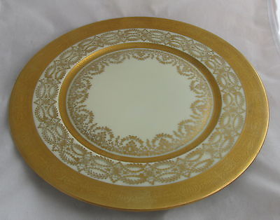 Old Gold Encrusted White China Dinner Charger Plate LeRoy Bohemia Czechoslovakia