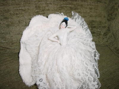 Vintage Antique Porcelain Half Doll Pin Cushion Spanish
