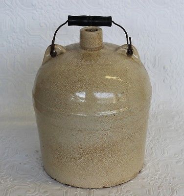 Title (ebay affiliate link): Antique Stoneware Jug Bale Wood Wire Handle Crock Ceramic Vintage Pottery Glazed