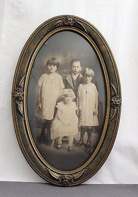 Antique Gesso Bubble Convex Glass Picture Frame 23" Long & Narrow Art Nouveau