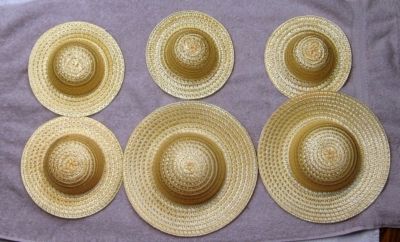 6 Synthetic Straw Hats for Antique / Reproduction Dolls