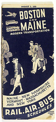 1938 BOSTON MAINE NEW HAPSHIRE VERMONT MASS. AND NEW YORK RAIL AIR BUS SCHEDULE