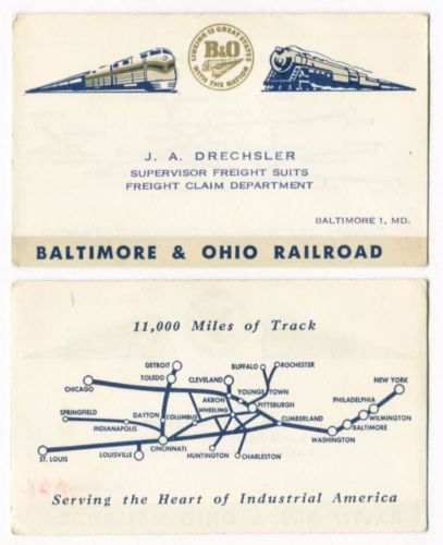 Title (ebay affiliate link): 1950s Baltimore & Ohio Railroad Train Business Card - Drechsler Supervisor Claim