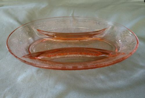 Title (ebay affiliate link): Hazel Atlas Florentine Poppy No 2 Pink Depression Glass Divided Relish Dish
