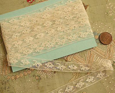 ANTIQUE 4 YARDS COTTON SMALL LACE ROSE TRIM TINY FRENCH DOLL DRESS FLOWER TAPE